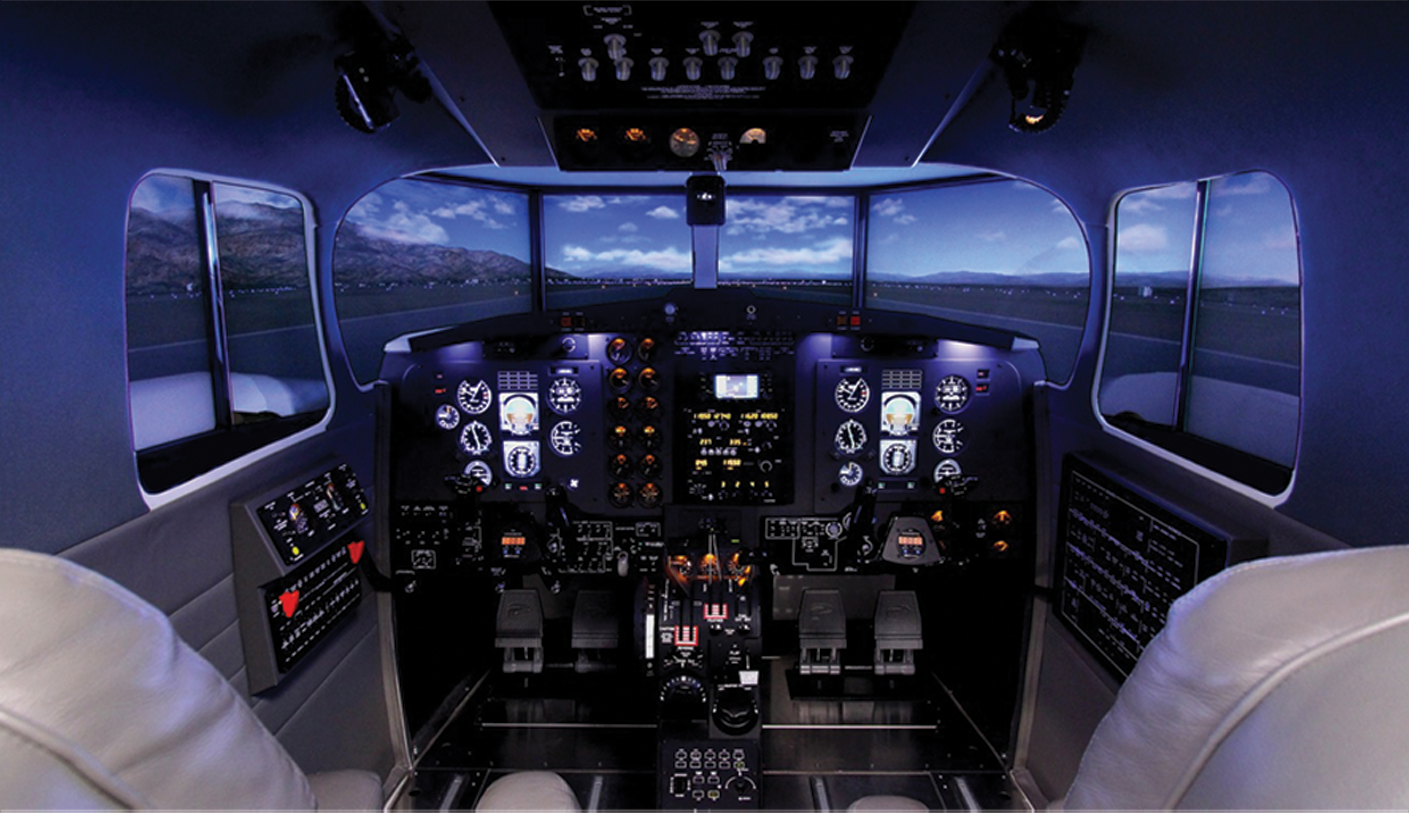 The MFD Turboprop represents a modern King Air type flight deck with EFIS (Electronic Flight Instrument System) type displays. The system has more new standard features including audio panel with digital altitude pre-select, autopilot, flight director, panel backlighting, circuit breaker panel, overhead panel with speakers and map lights, avionics stack that supports up to two Garmin GNS 430s or GNS 530s, four-way intercom and an all new center flight console giving you well more features than any other AATD on the market today.